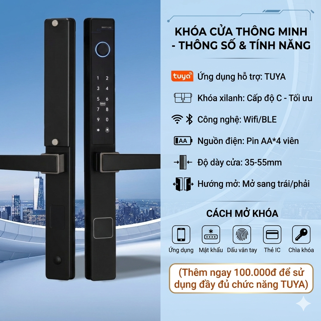 Phù hợp với khóa cửa lùa thông minh, tiết kiệm không gian và tiện lợi.